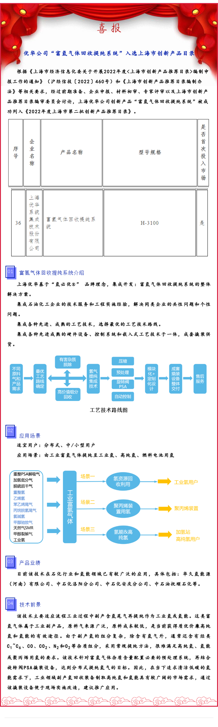热烈祝贺优华公司“富氢气体回收提纯系统”入选上海市创新产品目录