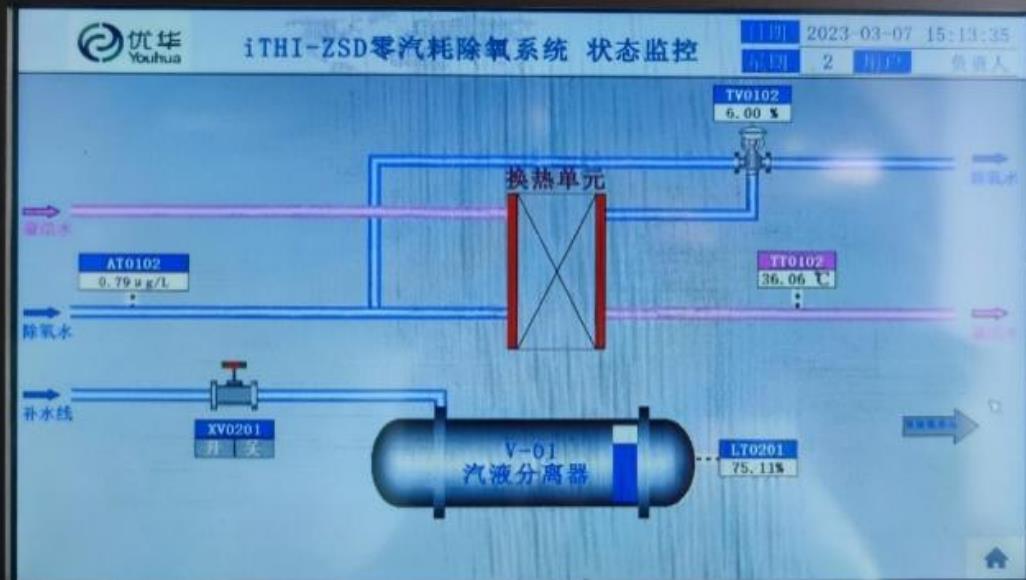 该技术除氧后的水中溶解氧<5μg/l,可以满足任何压力等级锅炉给水指标要求,同时系统还配置了自动控制中心,可保证在任何变工况下水中溶解氧指标稳定、合格。“零汽耗-锅炉给水余热利用系统”适用于替换脱氧指标不合格、需要药剂辅助除氧的热力除氧器。