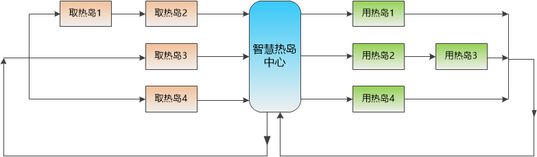 智慧热岛余热利用技术主要包括取热岛、用热岛和热岛中心。