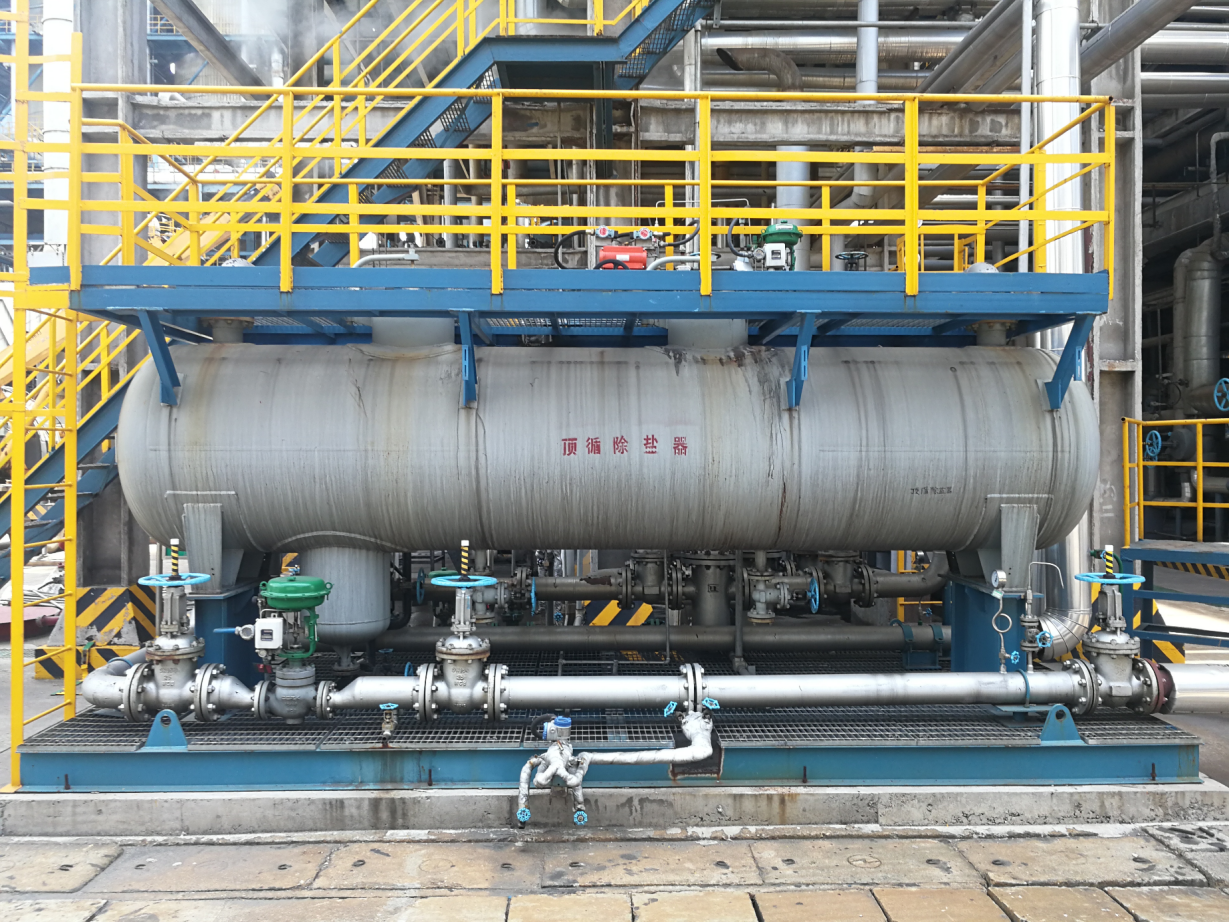 我公司提供分馏塔除盐专有技术工艺包和DS除盐系统撬装设备,配合详细设计、现场施工及系统调试,按期完成中石化沧州分公司催化分馏塔预防结盐技术改造。