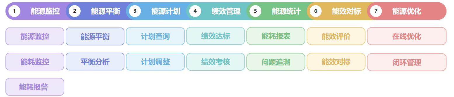 (2)建立能效评价体系,实时监控并对标关键能源点能效,追溯能耗根源问题。